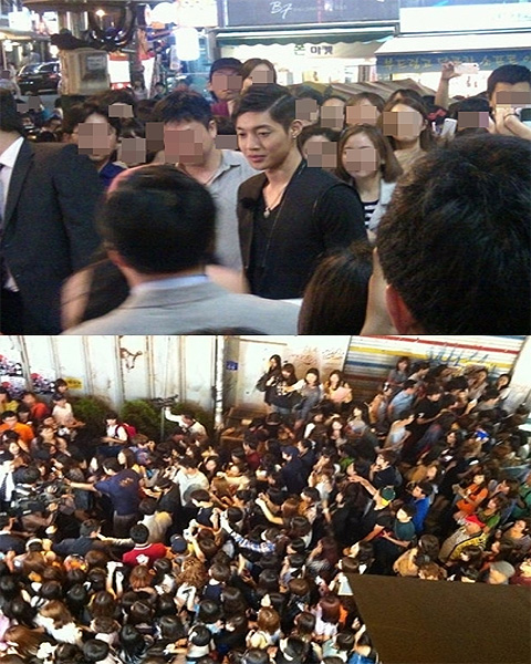 가수 김현중이 홍대에 깜짝 등장해 홍대 일대가 몰려든 인파로 장사진을 이뤘다.