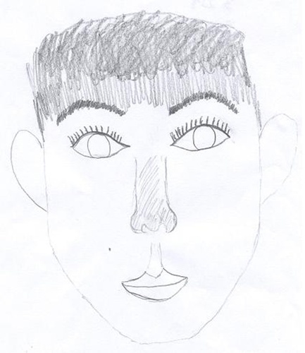이홍기는 연필을 이용해 머리와 코만 색칠해 강조하고, 이마와 머리의 경계가 없다. 눈은 부릅 뜬 모양으로 동공이 없는 모습이었다.