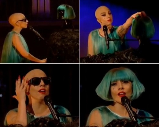 레이디 가가는 2절에서 피아노 앞에 걸어둔 가발을 머리에 쓰는 독특한 퍼포먼스를 선보였다.
