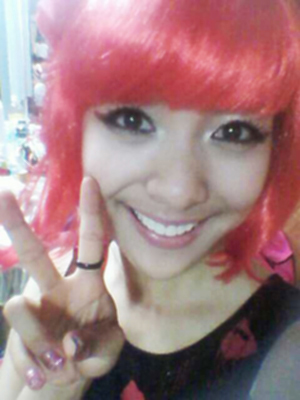 사진 속 루나는 빨간 단발머리를 하고 환하게 웃으며 브이자를 그려 보이고 있다.