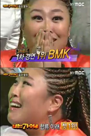 19일 방송된 MBC ‘우리들의 일밤-나는 가수다’에서 BMK는 재즈풍으로 편곡된 김완선의 ‘삐에로는 우릴 보고 웃지’를 특유의 폭발적 성량으로 선보이며 청중평가단의 마음을 사로잡았다.