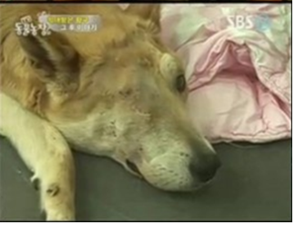 한편 방송에서 황구는 동물병원에서 치료를 받고 있으며 적출됐던 눈도 많이 회복된 상태다. 그러나 황구는 사람들의 손이 닿으면 잔뜩 긴장해 시청자들의 마음을 아프게 했다. (사진=SBS 방송 캡처)