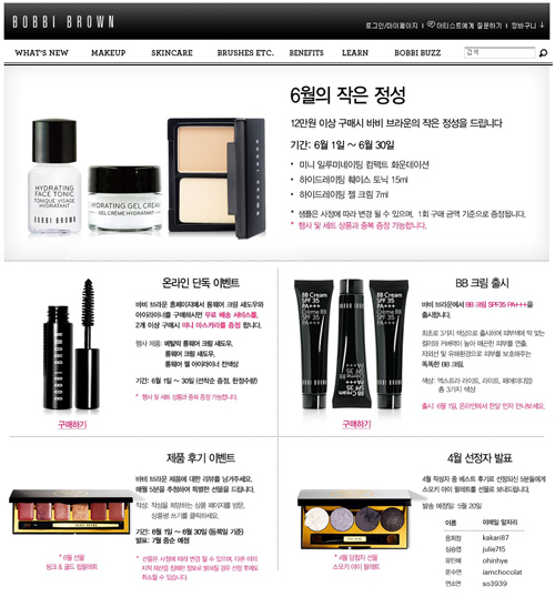 바비브라운 공식 온라인 쇼핑몰에서는 이번 6월 색다른 이벤트들도 준비하여 여성 고객들의 눈길을 끈다.