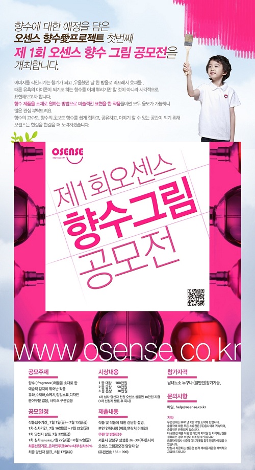 오센스 관계자는 “향수의 고수도, 향수의 초보도 향수를 쉽게 접하고, 공유하고, 이야기 할 수 있는 공간이 되기 위해 이번 공모전을 기획했다”고 밝혔다.