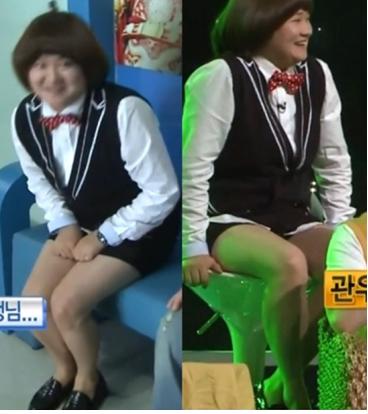 이는 지난 19일 방송된 MBC 예능프로그램 '우리들의 일밤-나는 가수다'에서 매니저로 복귀한 김신영이 짧은 반바지 의상으로 방송에 출연한 장면이다.