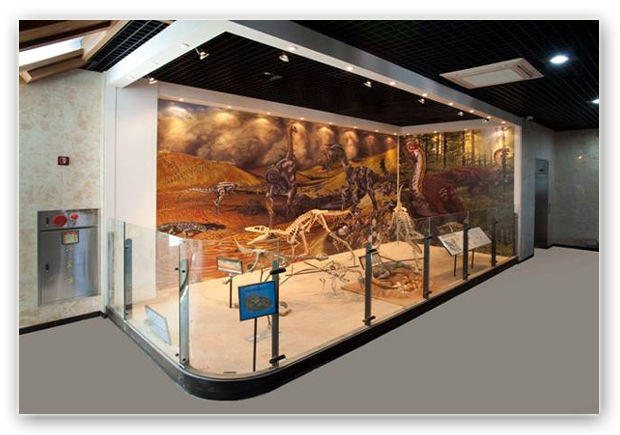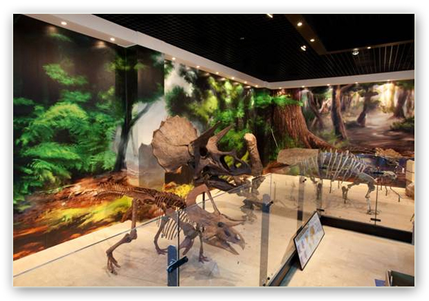 1층에는 쥬라기 중생대 시대 공룡 골격이 전시되고 2층에는 파충류 포유류 익룡 새 해양파충류가 배치됐다. 신생대 시대 코끼리 검치호랑이 나무늘보등도 볼 수있다.
