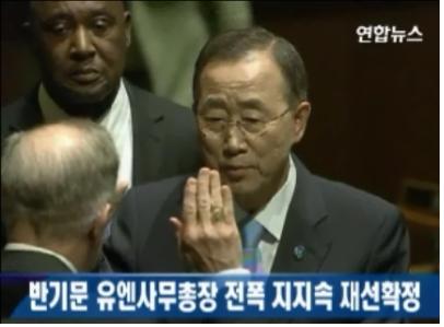 22일 새벽(한국시각) UN총회에서는 반기문 사무총장의 연임을 192개 회원국 대표들의 박수로 통과시켰다.
