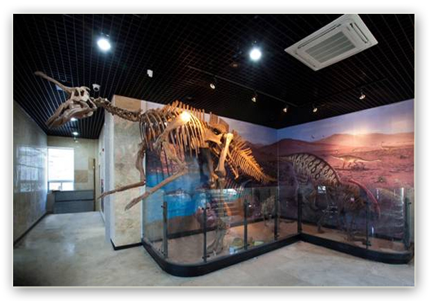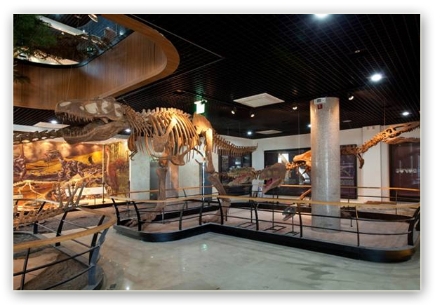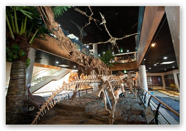 박물관안에 들어서면 1층에 쥬라기 중생대 시대의 거대한 공룡 골격이 전시돼 있다.