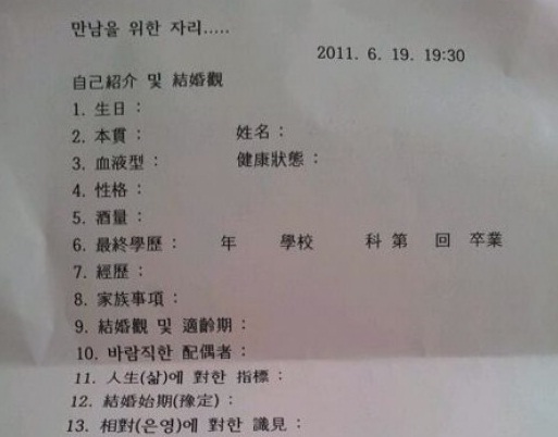 대부분 한자로 쓰여진 남친 면접 설문지에는자기소개 및 결혼관에 대한 22개의 항목이 나열돼 있다. 이 설문지는 딸을 둔 아버지가 딸의 남자친구의 됨됨이를 판단하기 위해 작성한 것으로 알려져 관심이 모아지고 있다.