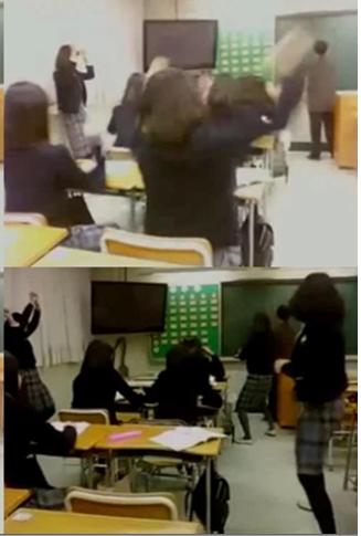 동영상 속 여학생들은 선생님이 칠판에 무엇인가 적기 위해 등을 돌리면 일제히 손을 들고 만세포즈를 취하거나 일어나 단체로 춤을 추는 등 짓궂은 장난을 멈추지 않았다.