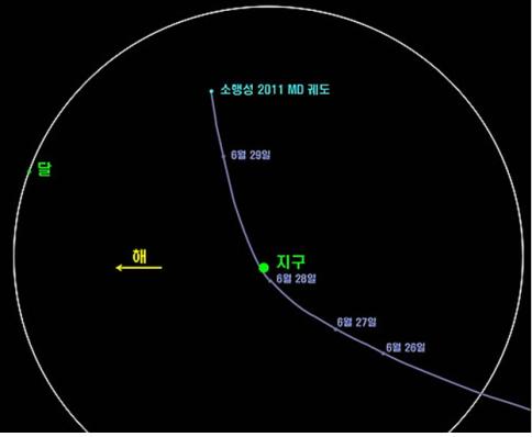 한국천문연구원은 소행성 ‘2011MD’가 28일(한국시간) 오전 2시께 지구를 스쳐 지날 것이라고 27일 발표했다.