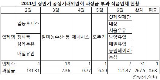 유업계는 지난해 11월부터 12월까지 주요 분유업체 2개사와 유업체 14개사가 각각 4억8천만원, 188억원의 과징금 폭탄이 내려진데 이어 2011년 한여름에도 사정의 칼날로 찬바람이 불고 있다.