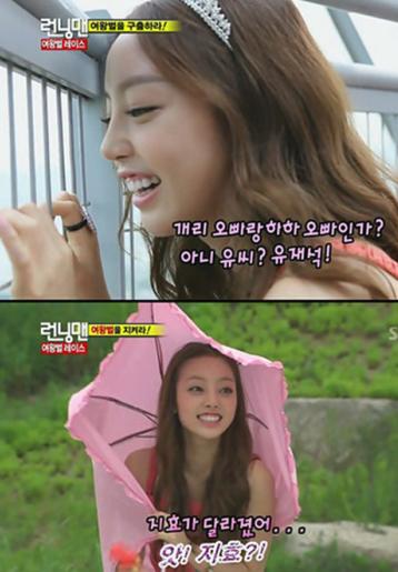 구하라는 방송 초반 자신을 데리러 올 '런닝맨' 멤버들을 기다리며 "개리 오빠랑 하하 오빠인가? 아니면 유씨? 유재석?'이라고 말했다.