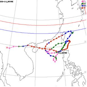 또 태풍 엘리(1994년 8월)는 만주를 지나 북극해까지 북상해 북위 70도 부근에서 소멸해 가장 고위도까지 북상한 태풍으로 기록됐다.