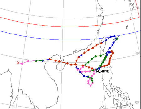 1986년 '웨인'은 이동하는 동안 필리핀 부근에서 세 번이나 빙빙 돌며 회전해 예보관들을 괴롭히기도 했다.