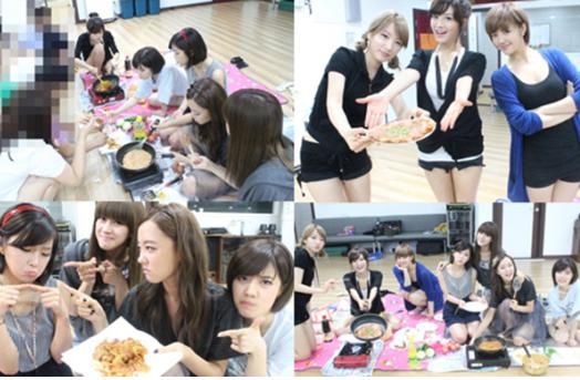 레인보우 멤버들은 휴일에 비가 내려 소속사 안무실에서 김치전과 계란말이를 직접 부쳐 먹으며 이 모습을 팬들에게 공개했다.