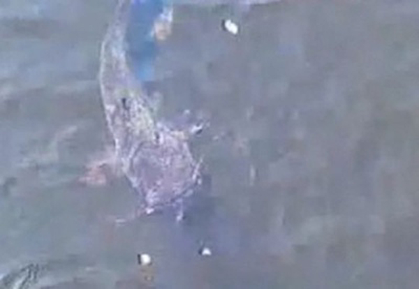 2년 전 루이지애나 연안 근방 멕시코 만에서는 향고래의 먹잇감을 연구하던 미 국립 해양대기청(NOAA) 소속 과학자들이 수심 457m에 쳐 놓은 탐사용 그물에 대형 오징어가 걸렸다. 이 초대형 오징어는 몸길이가 6m에 무게가 46.7kg에 달했다.(사진=체르노빌 원자력 발전소 인근 호주에서 발견된 괴물 메기 동영상 캡처)