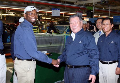 정몽구 회장은 28일 현대차 앨라배마 공장(HMMA)에 이어 29일 기아차 조지아공장(KMMG)을 잇따라 방문해 판매 전략과 차량의 품질을 집중 점검하는 한편 지난 5월 미국 자동차 시장에서 사상 처음으로 점유율 10%를 넘어선데 대해 임직원들을 격려했다. 정 회장의 미국 방문은 작년 8월 이후 10개월여만이다.