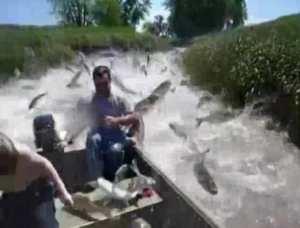 이 영상은 지난해 11월 유튜브에 공개됐는데, 모터보트를 이용해 미국 일리노이주 스푼강을 유람하던 가족들은 갑자기 보트 위로 뛰어드는 대형 잉어 '아시안 카프'떼의 습격을 받는 충격적인 상황을 담았다.