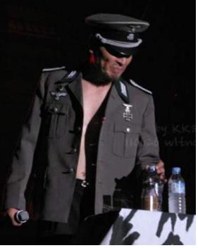 이날 임재범은 반전 메시지를 담은 ‘페러덤’을 부르며 독일군복 상의와 모자를 입고 ‘하이 히틀러’ 등의 구호를 외쳐 논란이 된 바 있다. (사진=온라인 커뮤니티)