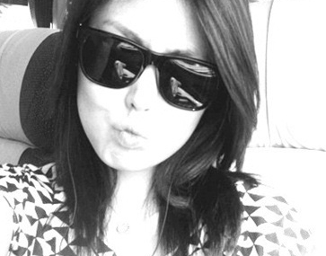 흑백 사진속의 베카는 검정색 선글라스를 끼고 입술을 쭉내민 귀여운 표정을 짓고 있다.
