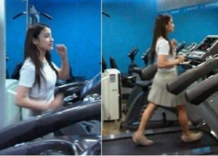 박규리는 교복을 입고 런닝머신 위에서 열심히 운동하는 사진을 올려 팬들에게 웃음을 선사했다.