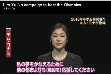 아사히TV는 평창의 2018년 동계 올림픽 유치가 결정된 7일, 관련 소식을 보도하면서 김연아의 프레젠테이션 영상을 함께 내보냈다.