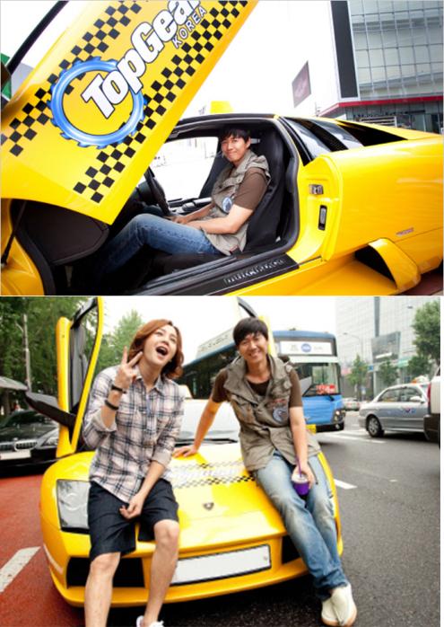 연정훈이 공개한 사진은 택시로 꾸며진 5억원 상당의 노란색 '람보르기니 무르시엘라고'와 장근석과 함께 촬영한 모습이다.
