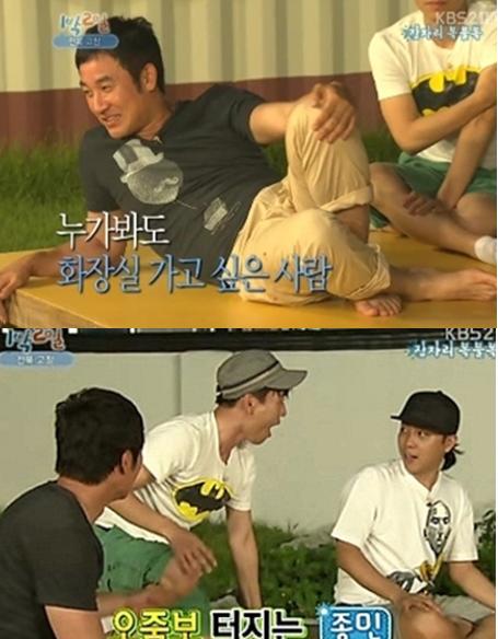 지난 10일 방송된 KBS '해피선데이-1박2일'에서는 복불복 게임으로 소변을 참는 게임을 했다.