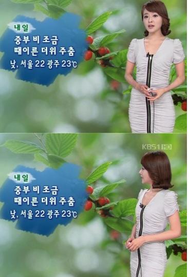 최근 한 온라인 커뮤니티 게시판에는 '기상캐스터 화끈한 지퍼패션'이라는 제목으로 KBS 기상캐스터 김혜선의 방송캡처 사진이 올라왔다.