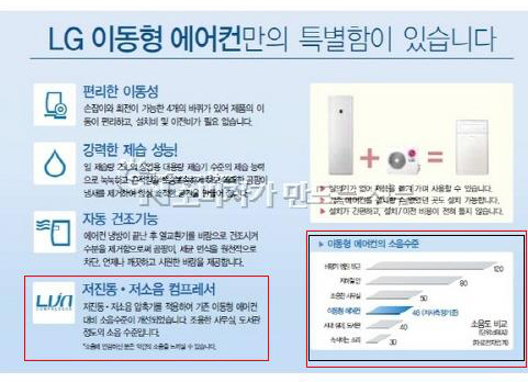 이와 관련해 LG전자 관계자는 “법적으로 소음에 관한 명확한 규제기준이 없고 내부적으로도 소음에 관한 최대치를 정해놓지 않았다”며 “에어컨 업계의 다른 업체들도 마찬가지일 것”이라고 밝혔다.