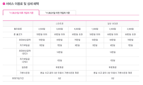 한편, LG U+ 고객센터 홈페이지에 따르면 서비스 이용 및 상세 혜택에 대한 세부기준이 2011년 6월 1일을 기준으로 월 보험료 500원 인상에 자기부담금 역시 높아지는 등 상당부분 변경된 것으로 나타났다. [소비자가 만드는 신문=정인아 기자]