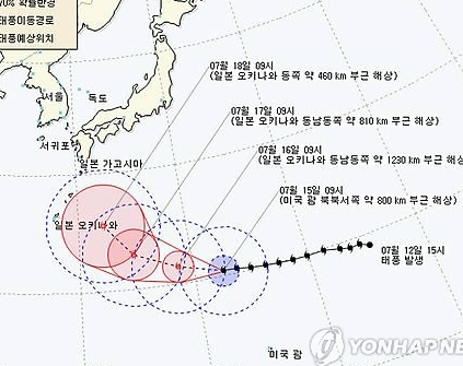 기상청은 제7호 태풍 '도카게'가 현재 일본을 향해 서북진 중인 제6호 태풍 '망온'과 24시간 내에 병합할 것으로 예상하고 있다.