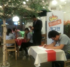 이 사진에는 지난 14일 경기도 파주시에 위치한 한 음식점에서 열린 김준호의 팬 사인회 현장 모습이 담겨 있다.