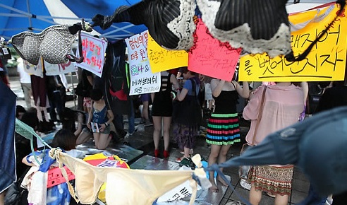 지난 16일 서울 도심에서는 여성의 야한 복장이 성범죄의 원인이 아니라는 뜻을 알리는 시위가 열렸다.
