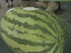 사진 속 수박은 보통 수박의 몇 배에 달하는 크기를 자랑하고 있으며 무게만 해도 무려 117kg이라고 한다. 이 수박은 일본 구마모토시의 한 수박 경영대회에서 나온 것으로 알려졌다.
