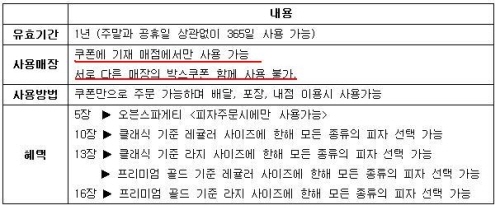 ‘쿠폰을 모았던 지점과 사용하려 한 지점이 달라 사용이 불가’하다는 콜센터 상담원의 답변에 윤 씨는 기분이 상하긴 했지만 이직한 회사에 찾아가 피자를 주문할 수도 없는 노릇이었고 ‘회사의 정책’이라는데 하는수 없다 포기했다.