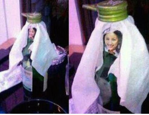 이에 이효리는 “오빠 잘 한번 생각해봐. 나 어때?”라며 자신의 얼굴이 붙어있는 소주병에 희 천을 덮어 씌워 '면사포 쓴 이효리' 사진을 함께 올려 팬들에게 웃음을 주기도 했다. (사진=이효리 트위터)