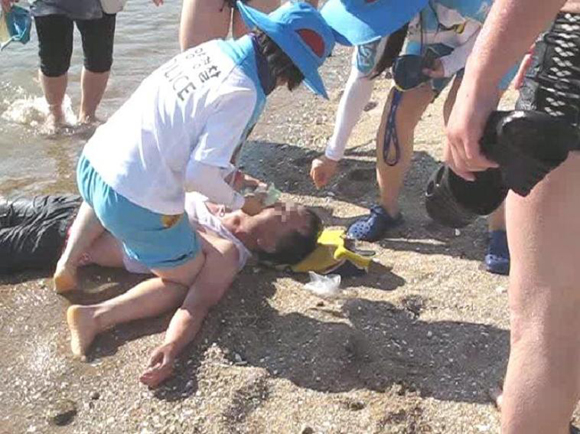 가족과 함께 해수욕을 즐기던 한모(41세, 부천시)씨는 잠시 한눈을 판 사이 튜브를 타던 아들 한모(11세)군이 바람에 밀려 먼 바다쪽으로 떠밀려가는 보고 스스로 구하려고 했다.