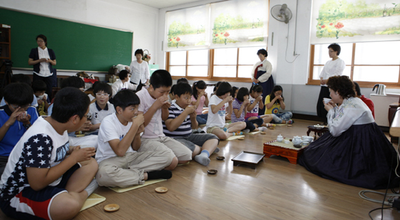 지난 14일과 15일 여수 율촌중학교와 목포동초등학교를 방문한 10여명의 회원들은 300여명의 학생을 대상으로 다례 교육을 실시하고, 보성차밭을 배경으로 한 사진전도 가졌다.