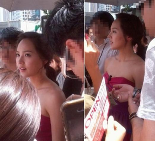공개된 사진 속 유진은 어깨를 드러낸 드레스를 입고 일반인들 사이에 아름다운 여신 미모를 뽐내고 있다.
