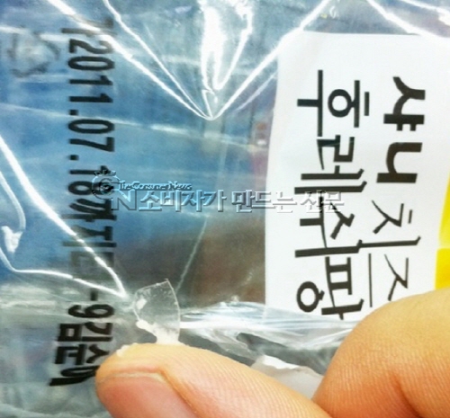 홍 씨는 빵을 거의 다 먹어갈 때 쯤 속에서 입 안에서 질긴 뭔가가 씹히는 느낌을 받고 뭔가 싶어 뱉어보니 5mm가량의 투명 플라스틱 조각이었다.