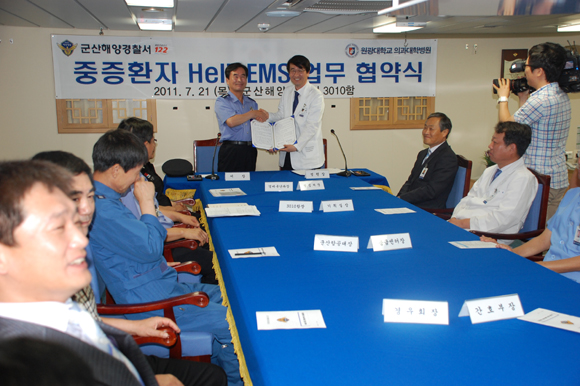 해경의 이번 업무 협약은 중증 응급환자가 발생했을 경우 해양경찰 헬기와 경비함정을 이용해 대형 수술이 가능한 3급 병원으로 이송하거나 병원에서 의료진을 헬기에 탑승시켜 현장으로 출동하는 등의 응급의료 서비스 내용을 담고 있다.