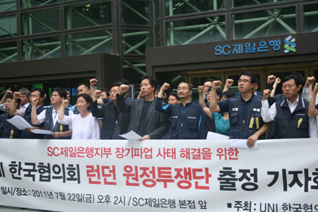 런던원장단은 23일 런던으로 출국해 영국노총, UNI 본부대표단과 피켓팅과 기자회견을 진행하고 SCB본사의 HR(인사담당) 책임자와 면담 등을 가진 후 오는 28일 귀국할 예정이다.