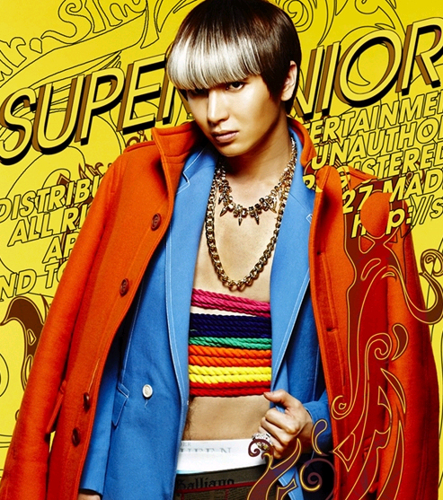 이특은 앞머리를 하얗게 염색하고 스모키 메이크업을 해 강인함을 내뿜고 있다.