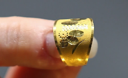 외형상으로는 1돈(3.75g)짜리 돌반지와 같지만 두께와 폭을 얇게 제작해 금 중량을 줄여 가격은 3배 가량 저렴하다.