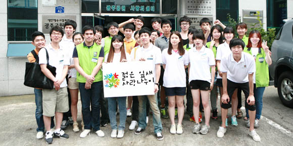 젊은 잎새 사랑 나누미 광주지역 13기 봉사단 30여명은 이날 오전 ‘사랑의 쉼터’에서 600여명의 독거어르신들을 대상으로 ‘사랑의 밥퍼’ 활동을 펼친데 이어, 오후에는 ‘나자렛집’을 찾아 시설청소, 제초작업 등 봉사활동을 하며 이마에 구슬땀을 흘렸다.