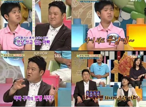 23일 방송된 SBS ’스타주니어쇼 붕어빵’에 출연한 김동현 군은 “아빠는 여행에 가면 혼자 인상을 쓰고 있다”며 불만을 호소했다.