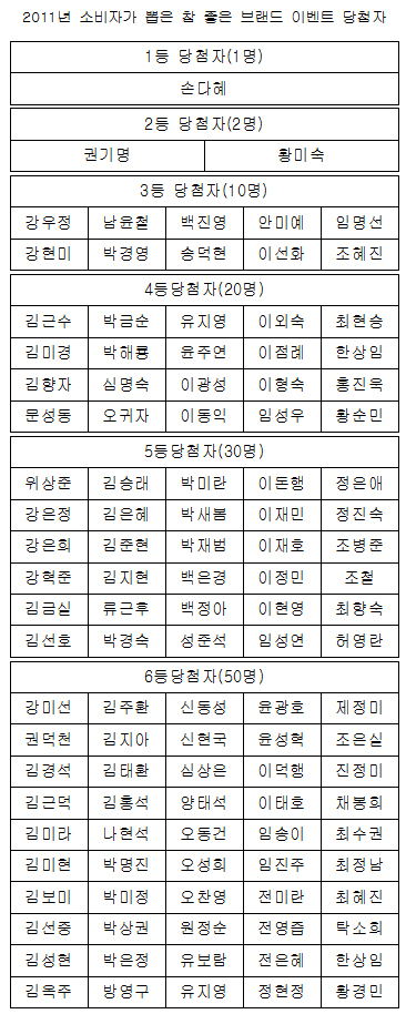 ‘2011 소비자가 직접 뽑는 참 좋은 브랜드’투표에서 12개 분야 52개 품목의 1위 브랜드들이 선정됐다.