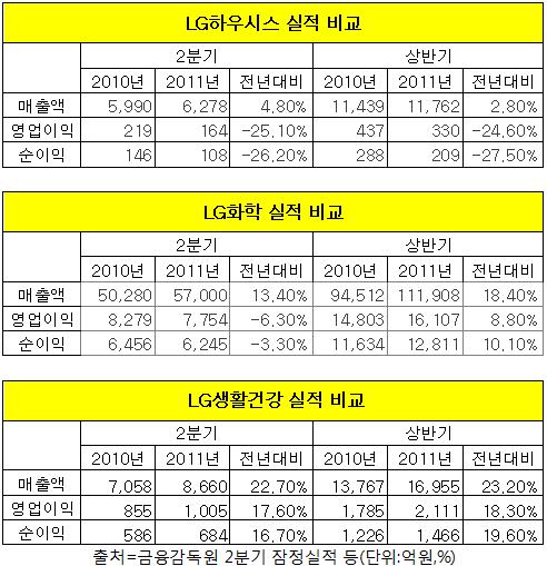 아직 2분기 실적이 발표되지 않은 LG생명과학도 지난해 영업이익률이 LG하우시스(2.8%)보다 2배에 달하는 5.9%였다.